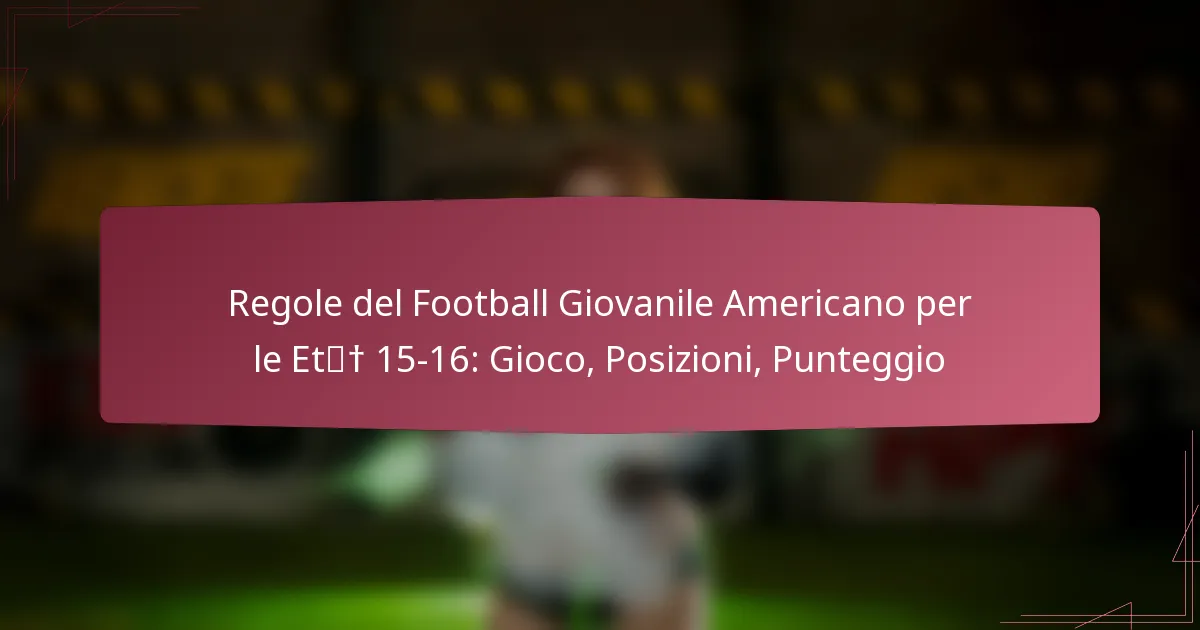Le regole del football giovanile americano per le età 15-16 anni differiscono significativamente da quelle per i gruppi di età più giovani, in particolare in termini di gioco, posizioni e metodi di punteggio. Questi cambiamenti riflettono una transizione verso un ambiente più competitivo, enfatizzando la sicurezza e lo sviluppo delle abilità.